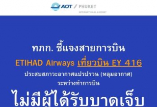 จังหวัดภูเก็ต ยืนยัน เที่ยวบิน EY 416 ลงจอดปลอดภัย ไม่กระทบการให้บริการ ทภก. พร้อม รับมือเหตุฉุกเฉิน ตามแผน