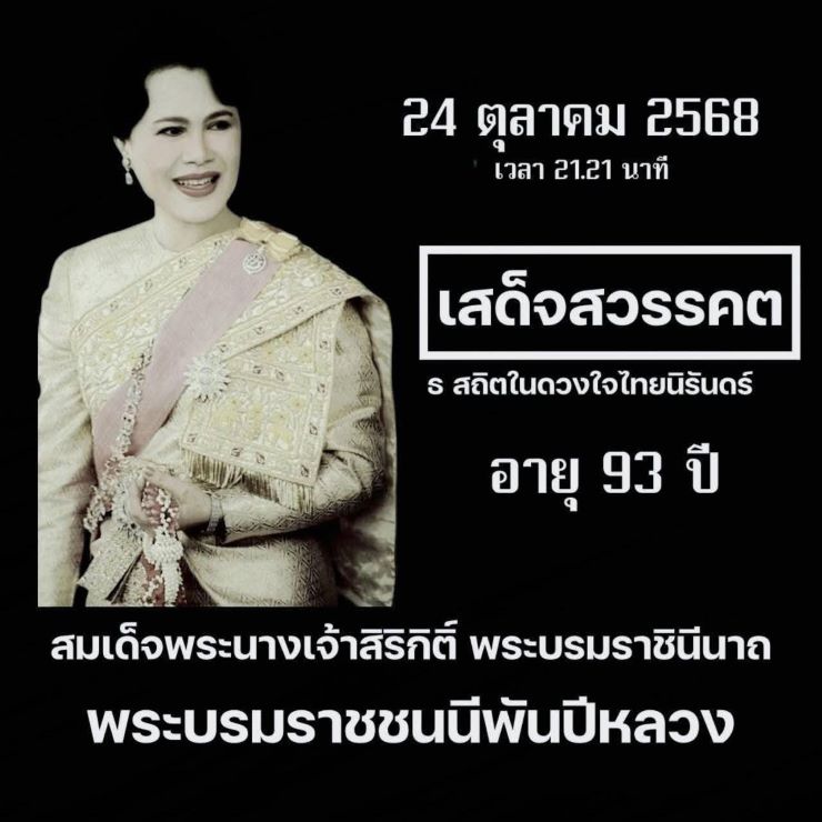 วันนี้ (25 ต.ค. 2568) ประกาศ สมเด็จพระนางเจ้าสิริกิติ์ พระบรมราชินีนาถ พระบรมราชชนนีพันปีหลวง สวรรคต