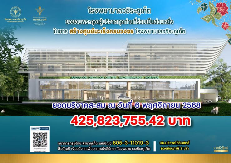 ร่วมมอบชีวิตใหม่ให้กับผู้ป่วยมะเร็ง ด้วยการบริจาคสมทบทุนสร้าง อาคารรังสีรักษา “ศูนย์มะเร็งครบวงจร โรงพยาบาลวชิระภูเก็ต”