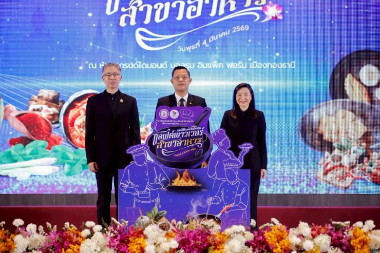 กรุงเทพฯ 4 มีนาคม 2569 – กระทรวงอุตสาหกรรม โดย กรมส่งเสริมอุตสาหกรรม หรือดีพร้อม (DIPROM) เดินหน้าขับเคลื่อนยุทธศาสตร์ซอฟต์พาวเวอร์อาหารไทย พร้อมประกาศความสำเร็จในการยกระดับทักษะกำลังคนครั้งใหญ่ผ่านโครงการส่งเสริมซอฟต์พาวเวอร์สาขาอาหาร ประจำปีงบประมาณ พ.ศ. 2568 ในกิจกรรมปัจฉิมนิเทศและสานสัมพันธ์ชุมชนเชื่อมโยงเครือข่ายภายใต้หลักสูตร “Master Thai Chef Program” ดำเนินการร่วม โดย สถาบันวิจัยวิทยาศาสตร์และเทคโนโลยีแห่งประเทศไทย (วว.) มุ่งปั้น 20,000 เชฟทักษะสูง สู่ การเป็นกำลังคนขับเคลื่อนยกระดับเมนูไทย สู่ สินค้าพรีเมียม ในเวทีโลก พร้อมสร้างระบบนิเวศการค้าที่ยั่งยืน เชื่อมโยงวัตถุดิบชุมชนต้นน้ำสู่ธุรกิจปลายน้ำ เพื่อกระตุ้นเม็ดเงินหมุนเวียนเศรษฐกิจฐานราก กว่า 3,300 ล้านบาท และเสริมเกราะป้องกันผู้ประกอบการด้วย Made by Thai และ เทคโนโลยี Data Analytics รับมือมาตรการกีดกันทางการค้าและนโยบายภาษีนำเข้าใหม่จากตลาดโลก