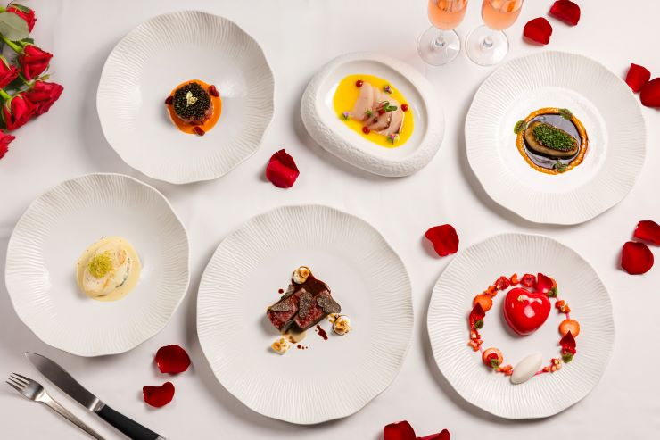 สำหรับค่ำคืนวันวาเลนไทน์ วันเสาร์ที่ 14 กุมภาพันธ์ 2569 ห้องอาหารเรดสกายขอเสนอเซ็ตเมนูสุดหรู 6 คอร์ส ในโซนกลางแจ้ง ราคา 13,555 บาทถ้วน สำหรับ 2 ท่าน พร้อมแชมเปญ 2 แก้ว และดอกกุหลาบ 1 ดอก เริ่มต้นความหวานด้วยปลาฮามาจิหมักซอสซิตรัส เสิร์ฟพร้อมอาโวคาโดและฟิงเกอร์ไลม์ ต่อด้วย ทูน่าอาคามิบลูฟิน เสิร์ฟคู่กัซปาโช่มะเขือเทศและคาเวียร์รอยัลออสเซียตรา ตามด้วยตับห่านย่าง เสิร์ฟพร้อมชัทนีย์มะม่วงและซอสมาตารา