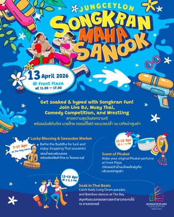 ศูนย์การค้าจังซีลอน ป่าตอง ภูเก็ต เชิญชวนชาวภูเก็ต นักช้อป และนักท่องเที่ยว ร่วมสืบสานวัฒนธรรมประเพณีไทย เนื่องในเทศกาลมหาสงกรานต์อย่างยิ่งใหญ่ ในงาน “JUNGCEYLON SONGKRAN MAHA SANOOK” ชวนสัมผัสเสน่ห์ความเป็นไทย พร้อมกิจกรรมความบันเทิงตลอดช่วงสงกรานต์นี้ อาทิ