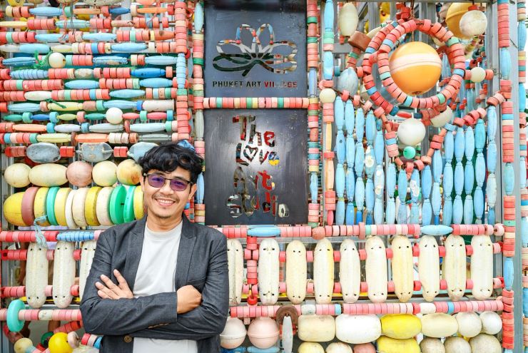 • “คุณปุ๋ย – กิติพงษ์ โง้วศิริ” ศิลปินชาวภูเก็ต The Love Art Studio จาก Phuket Art Village (ศูนย์ศิลปะร่วมสมัย และวัฒนธรรมชุมชนของเหล่าศิลปิน ใน จ.ภูเก็ต) ที่มาร่วมสร้างสรรค์ผลงาน “Art Installation and Interactive Sustainable” ศิลปะจัดวางขนาดใหญ่ ภายใต้คอนเซ็ปต์ “Invisible – Livable” การเดินทางของ “ขยะจากทะเล” สู่ การพลิกฟื้นคืนชีวิต ด้วยการนำกลับมาสร้างคุณค่า และนำกลับมาใช้เป็น “วัสดุ” ผ่านการออกแบบและตีความหมายใหม่ สู่ผลงานภายใต้พื้นที่ของคำว่า “บ้าน” จากวัสดุต่าง ๆ ที่ไม่เคยมีใครมองเห็น กลับกลายเป็นความอบอุ่น ความปลอดภัย และความน่าอยู่ ส่งผ่านมุมมองที่แตกต่างกัน ตามประสบการณ์ ความรู้สึก ของผู้มาเยือนแต่ละคน โดยผลงานศิลปะจัดวาง นี้ จัดขึ้น ภายใต้โครงการ Art for Ocean และเป็นกิจกรรมคู่ขนานไปกับ งานมหกรรมศิลปะร่วมสมัยนานาชาติ (Thailand Biennale Phuket 2025) ภายใต้แนวคิด “นิรันดร์กัลป์” ซึ่งเป็นหนึ่งในความร่วมมือจากภาคเอกชน ภายในจังหวัดภูเก็ต ที่จะจัดแสดง ตั้งแต่ วันนี้ – 30 เม.ย. 69
