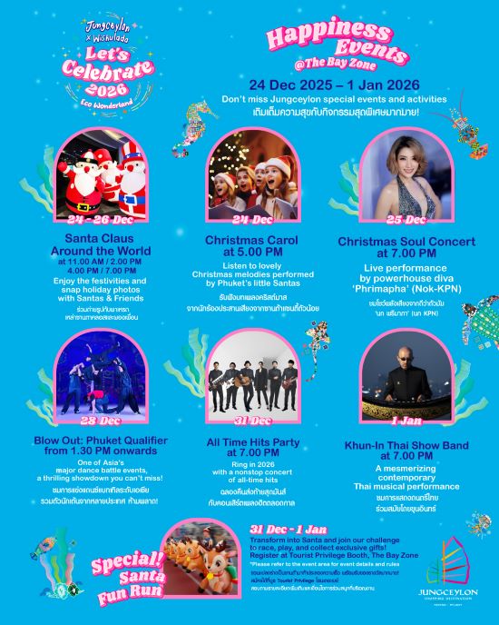 – ลุ้นและเชียร์ไปกับการแข่งขันประลองความเร็ว “Santa Fun Run” โดยสามารถสมัครร่วมสนุกได้ที่บูธ Tourist Privilege โซนเดอะเบย์ อารีน่า ในวันที่ 31 ธ.ค. 68 – 1 ม.ค. 69