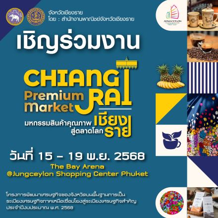 กิจกรรม “ซื้อปั๊ป ลุ้นรับโชค” มูลค่า 500 บาท เป็นต้น พร้อมร่วมชมนิทรรศการและกิจกรรมเจรจาธุรกิจภายในงานอีกด้วย เชิญชวน ร่วมงาน “ของดีจากเหนือสุดแดนสยาม สู่ปลายด้ามขวานภูเก็ต” ในงาน “Chiang Rai Premium Market” มหกรรมสินค้าคุณภาพเชียงรายสู่ตลาดโลก ในระหว่าง วันที่ 15 – 19 พ.ย. 68 ตั้งแต่ เวลา 10.00 – 21.00 น. ณ ลานกิจกรรมโซนเดอะเบย์ อารีน่า ศูนย์การค้าจังซีลอน ป่าตอง ภูเก็ต ติดตามรายละเอียด ได้ที่ https://www.facebook.com/JungceylonFanpage หรือสอบถามข้อมูลเพิ่มเติมโทร. 076-600-111