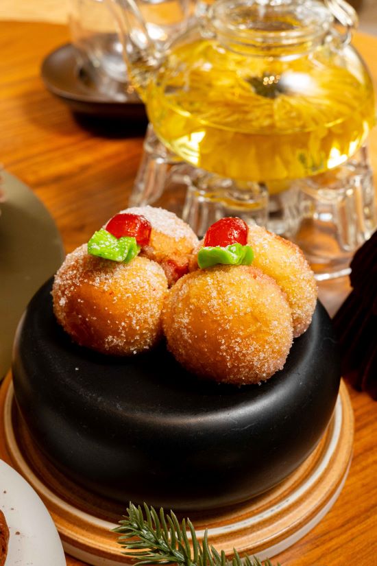 เค้กอัลมอนด์สอดไส้ริคอตต้าชีส ชูว์ครีมช็อกโกแลตสอดไส้ครีมเฮเซลนัท มินิโดนัทเบอร์ ลิเนอร์, พัฟสอดไส้ครีมอิตาลี, เค้กรูปพีชสอดไส้ครีมผสมเหล้าอัลเซอร์เมส และคุกกี้เฮเซลนัทสอดไส้น้ำตาล ขนมบัตเตอร์ฟลาย คริสต์มาสคุกกี้ จับคู่กับชาหรือกาแฟ