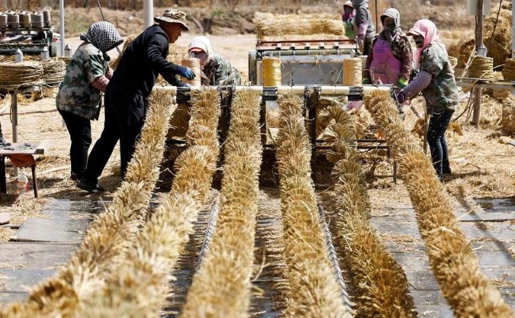 (แฟ้มภาพซินหัว : ชาวบ้าน ขณะทำเชือกฟางที่หมู่บ้านเฮยหลิน ในเมืองจงเว่ย เขตปกครองตนเองหนิงเซี่ยหุย ทางตะวันตกเฉียงเหนือของจีน วันที่ 10 เม.ย. 2026)