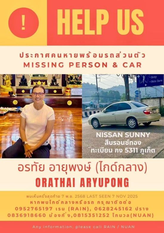 จากการตรวจสอบภายในรถยนต์นิสสัน ซันนี่ สีบรอนซ์ทอง หมายเลขทะเบียน กง 5311 ภูเก็ต พบศพหญิงอยู่บริเวณที่นั่งด้านหน้า ทราบชื่อภายหลังคือ นางสาวอรทัย (ไกด์กลาง) อายุพงศ์ อายุ 56 ปี อาชีพมัคคุเทศก์ ซึ่งญาติได้แจ้งหายไว้เมื่อวันที่ 7 พฤศจิกายน ที่ผ่านมา