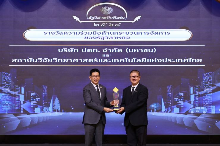 9. รางวัลความร่วมมือด้านกระบวนการจัดการของรัฐวิสาหกิจดีเด่น โครงการคู่ความร่วมมือระหว่าง ปตท. และสถาบันวิจัยวิทยาศาสตร์และเทคโนโลยีแห่งประเทศไทย (วว.) เพื่อยกระดับปรับปรุงการดำเนินงานและการจัดการกระบวนการภายในองค์กรของ วว. ซึ่งเป็นรากฐานสำคัญในการเพิ่มขีดความสามารถทางการแข่งขันและสร้างนวัตกรรมเพื่อการเติบโตอย่างยั่งยืน