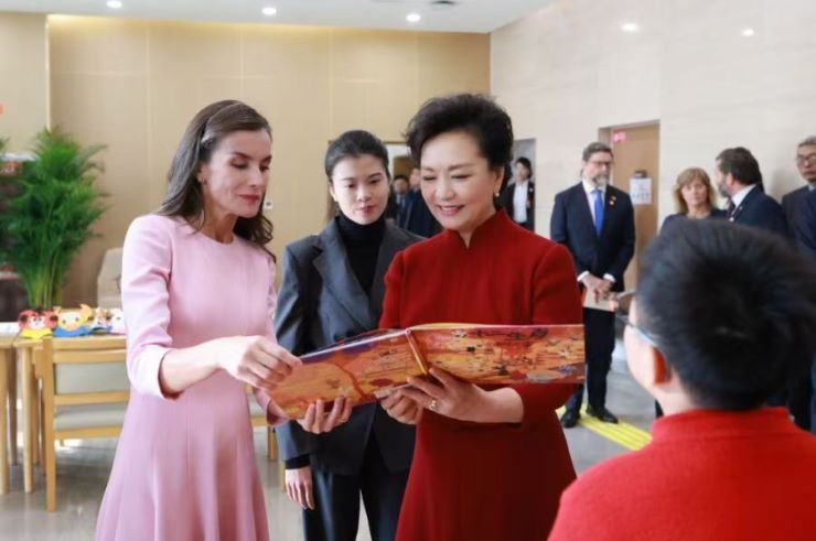 เช้าวันที่ 12 พฤศจิกายน มาดาม เผิง ลี่หยวน ภริยาของประธานาธิบดีสี จิ้นผิง และสมเด็จพระราชินีเลติเซีย ที่ติดตามสมเด็จพระราชาธิบดีฟิลิเป ที่ 6 กษัตริย์แห่งสเปน เสด็จเยือนประเทศจีนอย่างเป็นทางการ ได้เข้าเยี่ยมชมศูนย์สาธิตบริการผู้พิการ กรุงปักกิ่ง