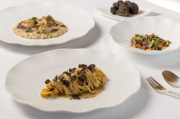 อาทิ ตับห่านย่างเสิร์ฟพร้อมเฮเซลนัตและเห็ดทรัฟเฟิลดำ ราคา 1,650 บาท++, ตากลิโอลินี โฮมเมด แบบดั้งเดิมเสิร์ฟพร้อมพาร์เมซานและเห็ดทรัฟเฟิลดำ ราคา 1,150 บาท++, ริซอตโต้เสิร์ฟพร้อมหอยเชลล์ย่างและเห็ดทรัฟเฟิลดำ ราคา 1,560 บาท++ (ราคานี้ไม่รวมอัตราภาษีและค่าบริการ) เติมเต็มความอร่อยในทุกคำ ในมื้ออาหารสุดพิเศษด้วยวิวมหานครใจกลางกรุงฯแบบ 360 องศา และสัมผัสกับหลากหลายเมนูจานเด่นสุดพิเศษประจำห้องอาหารอีกมากมาย ตั้งแต่วันนี้ – 28 กุมภาพันธ์นี้
