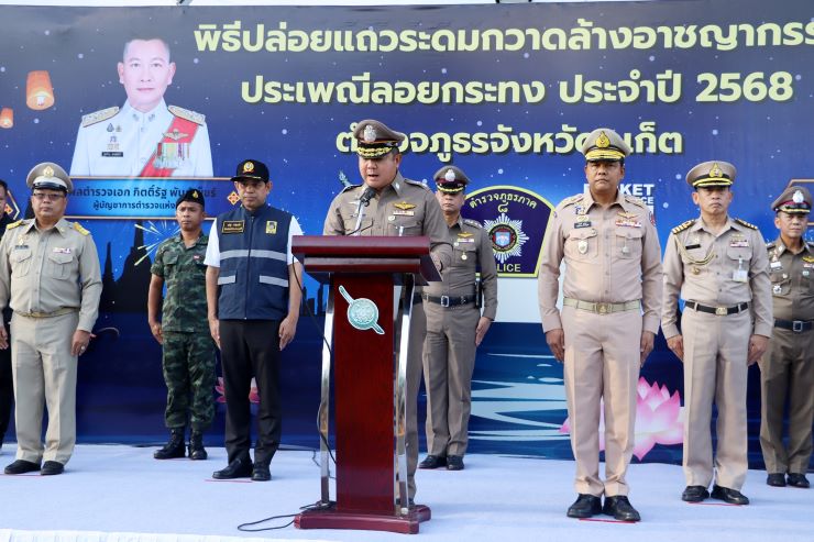 เมื่อวันที่ 4 พฤศจิกายน 2568 เวลา 17.00 น. นายเรวัต อารีรอบ นายก องค์การบริหารส่วนจังหวัดภูเก็ต มอบหมายให้ นายพิชัย ตันกูล ที่ปรึกษา นายก อบจ.ภูเก็ต ร่วมพิธีปล่อยแถว ระดม กวาดล้าง อาชญากรรม ช่วง ประเพณีวันลอยกระทง ประจำปี 2568 ณ ตำรวจภูธรจังหวัดภูเก็ต โดยมี พล.ต.ต.สินเลิศ สุขุม ผู้บังคับการตำรวจภูธรจังหวัดภูเก็ต เป็นประธานในพิธี พ.ต.อ.กษิดิน จ่ายกระโทก ผู้กำกับการ ฝ่ายอำนวยการตำรวจภูธรจังหวัดภูเก็ต กล่าวรายงาน พร้อมด้วย นายกองเอกอดุลย์ ชูทอง รองผู้ว่าราชการจังหวัดภูเก็ต และหน่วยงานราชการต่าง ๆ เข้าร่วม