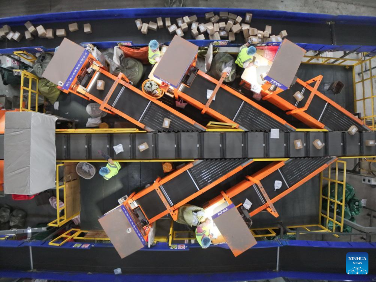(แฟ้มภาพซินหัว : พนักงานคัดแยกพัสดุที่สวนอุตสาหกรรมโลจิสติกส์ในเมืองเหลียนอวิ๋นก่าง มณฑลเจียงซู ทางตะวันออกของจีน วันที่ 11 พ.ย. 2025)