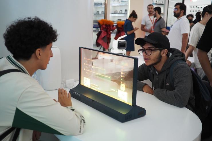 (แฟ้มภาพซินหัว : นักธุรกิจต่างชาติทดลองใช้อุปกรณ์แปลภาษาอัจฉริยะ ที่ศูนย์การค้าดิจิทัลระดับโลกในเมืองอี้อู มณฑลเจ้อเจียง ทางตะวันออกของจีน วันที่ 14 ต.ค. 2025)