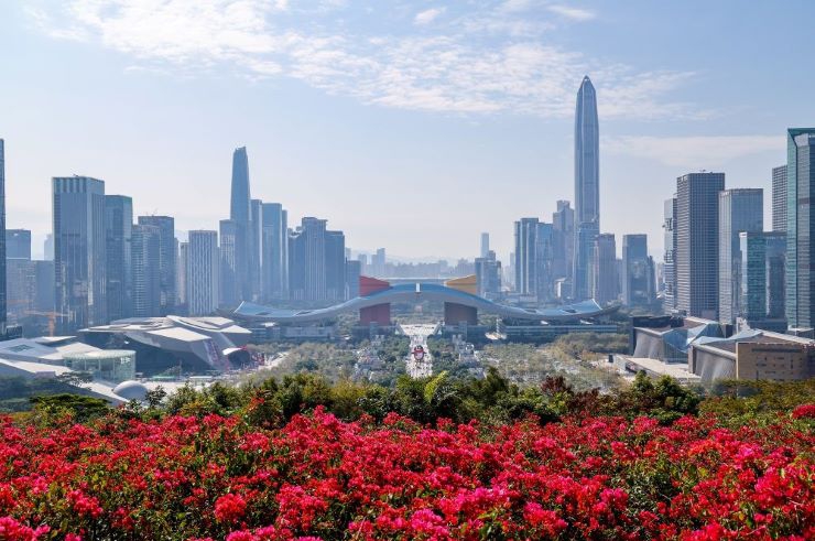 (แฟ้มภาพซินหัว : ทิวทัศน์ใจกลางเมืองเซินเจิ้น เมื่อมองจากภูเขาเหลียนฮวาซาน)