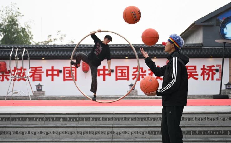 (แฟ้มภาพซินหัว : นักเรียนฝึกทักษะที่ลานกายกรรม ริมถนนเลียบคลองใหญ่ ในอำเภออู๋เฉียว เมืองชางโจว มณฑลเหอเป่ย ทางตอนเหนือของจีน วันที่ 28 ต.ค. 2025)