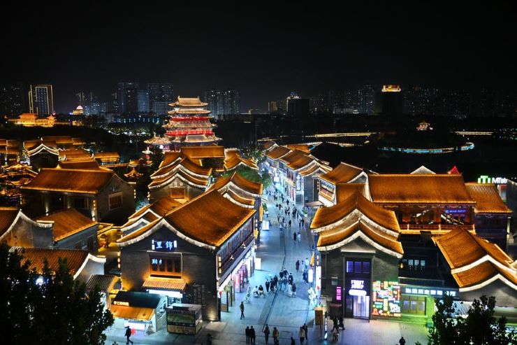 (แฟ้มภาพซินหัว : ประชาชนเดินชมย่านวัฒนธรรมริมคลองใหญ่ในเขตอวิ๋นเหอ เมืองชางโจว มณฑลเหอเป่ย ทางตอนเหนือของจีน วันที่ 29 ต.ค. 2025)