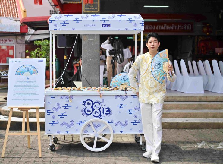 “แสนสิริ และธนาคารไทยพาณิชย์ ขอเป็นส่วนหนึ่งในการส่งต่อความดี พร้อมเติบโตไปด้วยกันกับชุมชน จึงได้ร่วมมือกับ “YAYEE” แบรนด์พื้นเมืองของจังหวัดภูเก็ต นำโดย คุณภูมิ-พงศ์พิวิชญ์ ทั่วไตรภพ ทายาทรุ่นสอง ที่มีแนวคิดในการสร้างคุณค่า และต่อยอดพัฒนาธุรกิจเพื่อคนในชุมชน เกิดเป็น “ศรัทธาโปรเจค” ผ่านการออกแบบพัดจีนลายพิเศษ มอบเป็นของขวัญแทนใจ แด่ลูกบ้านแสนสิริ ที่มาร่วมล้างศาลเจ้า ในปีนี้ ของขวัญชิ้นนี้ ไม่ได้เป็นเพียงแค่อุปกรณ์สำหรับใช้คลายร้อน แต่ได้ถูกยกระดับเป็นเครื่องมงคล ที่นำ 2 สัญลักษณ์แห่งความรุ่งเรือง มารวมเอาไว้ในหนึ่งเดียว ผ่านแรงบันดาลใจ จาก นกเฟิ่งหวง สัตว์มงคลในตำนานจีน ซึ่งถือเป็นสัญลักษณ์แห่งความรุ่งเรือง และเกียรติยศของชาวเปอรานากัน มาตั้งแต่โบราณ รายล้อมด้วยดอกโบตั๋น “ราชินีแห่งบุปผา” สัญลักษณ์ความงามเหนือกาลเวลา ที่จะนำพาความโชคดี ความมั่งคั่ง ความรุ่งเรือง มาสู่ผู้ครอบครองในทุกครั้งที่เบ่งบาน พิเศษยิ่งกว่า โดยตัวพัดจะมีพู่ห้อยจากผ้าปาเต๊ะเหลือใช้ ที่ผลิตโดยกลุ่มผู้ต้องขังหญิง และกลุ่มชุมชนต่าง ๆ พัดลายพิเศษนี้จึงนำทั้งความมงคลมั่งคั่งมาสู่ผู้รับ และนำอาชีพมาสู่ผู้ผลิตด้วยเช่นกัน” คุณอุทัย และ คุณสุรพงศ์ กล่าวปิดท้าย