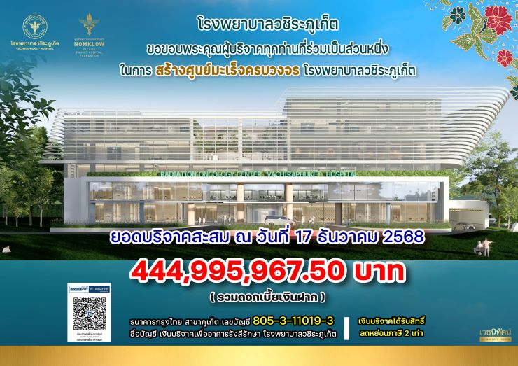 ร่วมมอบชีวิตใหม่ให้กับผู้ป่วยมะเร็ง ด้วยการบริจาคสมทบทุนสร้าง อาคารรังสีรักษา “ศูนย์มะเร็งครบวงจร โรงพยาบาลวชิระภูเก็ต”