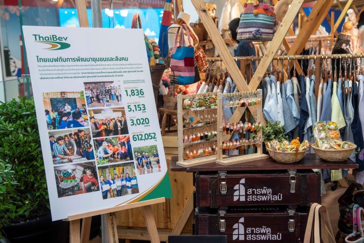ไม้หอม MINDHOM สมุนไพรจากธรรมชาติผสมผสานภูมิปัญญาไทย เพื่อดูแลสุขภาพและจิตใจแบบองค์รวม อย่างปลอดภัยไร้สารเคมี / คอร์แซร์ (Corsair) กระเป๋าผ้าด้นมือที่นำผ้าเก่าจากอินเดียมาขึ้นตัวกระเป๋าที่มีเอกลักษณ์เฉพาะตัว / บาติกเดอนารา ผ้าบาติกจากช่างเขียนฝีมือดี การร่วมสนับสนุนดังกล่าวนี้ สะท้อนถึงความมุ่งมั่นของไทยเบฟ ในการร่วมขับเคลื่อนเศรษฐกิจฐานราก ผ่านการสร้างรายได้ สร้างอาชีพ และสร้างโอกาสให้ชุมชนมีความเข็มแข็งตลอดจน สามารถบริหารจัดการตนเอง ได้อย่างยั่งยืน