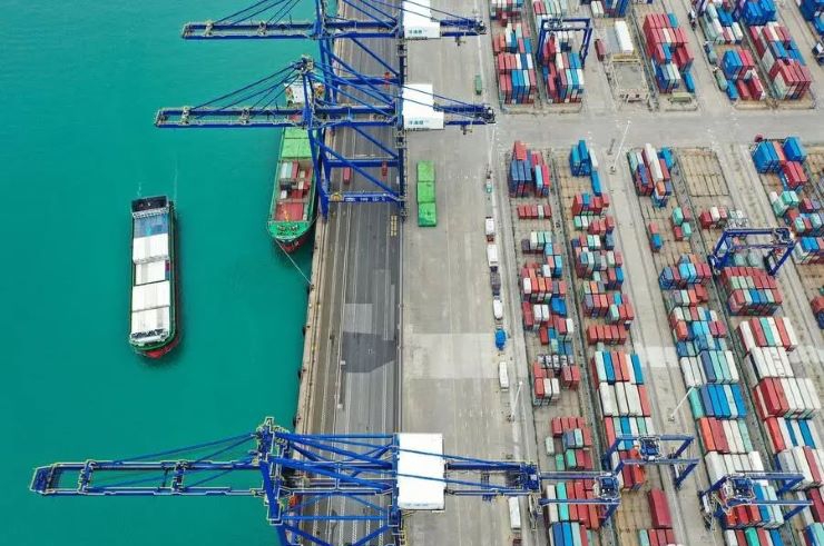 (แฟ้มภาพซินหัว : สถานีตู้คอนเทนเนอร์ ระหว่าง ประเทศหยางผู่ มณฑลไห่หนานทางตอนใต้ของจีน วันที่ 13 มี.ค. 2024)