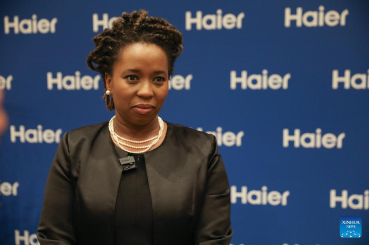 (แฟ้มภาพซินหัว : วูยิสวา ราโมคโกปา (Vuyiswa Ramokgopa) สมาชิกสภาบริหารด้านการเกษตรและการพัฒนาชนบทของจังหวัดเคาเต็ง ในพิธีเปิดตัวผลิตภัณฑ์ ที่จัดขึ้น โดยบริษัทไฮเออร์ (Haier) ในเมืองโจฮันเนสเบิร์กของแอฟริกาใต้ วันที่ 2 ก.พ. 2026)