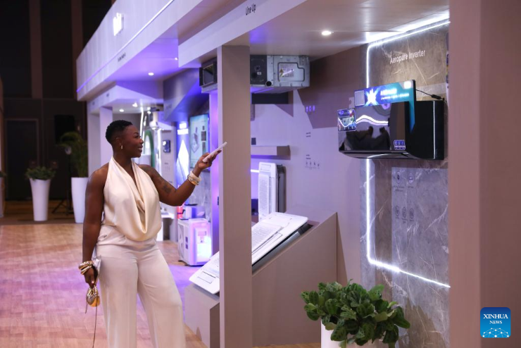 (แฟ้มภาพซินหัว : หญิงสาวทดลองผลิตภัณฑ์ ในพิธีเปิดตัวผลิตภัณฑ์ที่จัดขึ้นโดยบริษัทไฮเออร์ (Haier) ในเมืองโจฮันเนสเบิร์กของแอฟริกาใต้ วันที่ 2 ก.พ. 2026)