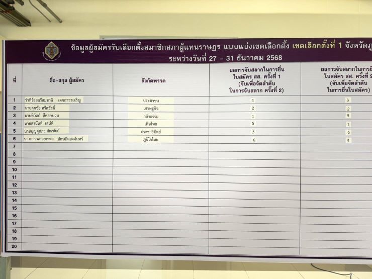 เปิดโผขุนพลเศรษฐกิจและการเมือง: รายนามผู้สมัคร สส. ภูเก็ต (อย่างไม่เป็นทางการ)