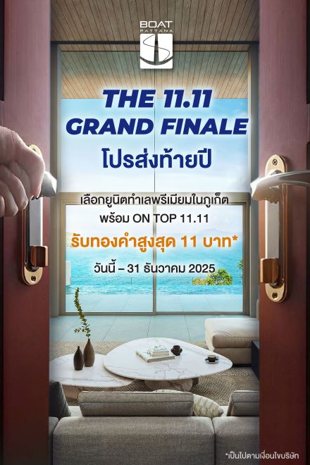 Boat Pattana จัด เเคมเปญ 𝐓𝐇𝐄 𝟏𝟏.𝟏𝟏 𝐆𝐑𝐀𝐍𝐃 𝐅𝐈𝐍𝐀𝐋𝐄 โปร ส่งท้ายปี ✨ เป็นเจ้าของอสังหาฯ ทำเลพรีเมียมในภูเก็ต พร้อมรับทองคำ สูงสุด 11 บาท* วันนี้ – 31 ธ.ค. 2025