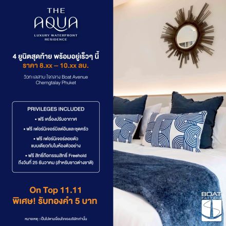 Boat Pattana จัด เเคมเปญ 𝐓𝐇𝐄 𝟏𝟏.𝟏𝟏 𝐆𝐑𝐀𝐍𝐃 𝐅𝐈𝐍𝐀𝐋𝐄 โปร ส่งท้ายปี ✨ เป็นเจ้าของอสังหาฯ ทำเลพรีเมียมในภูเก็ต พร้อมรับทองคำ สูงสุด 11 บาท* วันนี้ – 31 ธ.ค. 2025