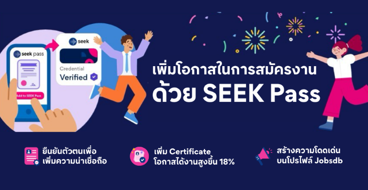 กรุงเทพฯ, 28 เมษายน 2569 – Jobsdb by SEEK แพลตฟอร์มหางานออนไลน์ชั้นนำของประเทศไทย ชู ความโดดเด่นของ ‘SEEK Pass’ พาสปอร์ตดิจิทัลสำหรับการหางาน ที่ยกระดับโปรไฟล์ ผู้สมัครงานให้โดดเด่น และน่าเชื่อถือ ผ่านการสร้างโปรไฟล์ที่สามารถตรวจสอบ ได้จริง ในรูปแบบดิจิทัล โดยเปิดให้ผู้หางานสามารถยืนยันตัวตน, รับรองประวัติ รวมถึงคุณวุฒิด้านการศึกษา และการพัฒนาทักษะ และแสดงผลสอบวัดระดับภาษาอังกฤษ ระดับสากล ทั้ง IELTS และ PTE (Pearson Test of English) บนโปรไฟล์ได้โดยตรง มุ่งสร้างมาตรฐานใหม่ในการสรรหาบุคลากรที่โปร่งใส แม่นยำ และช่วยให้คนทำงานชาวไทยโดดเด่นในตลาดแรงงานที่การแข่งขันสูงขึ้น ในปัจจุบัน