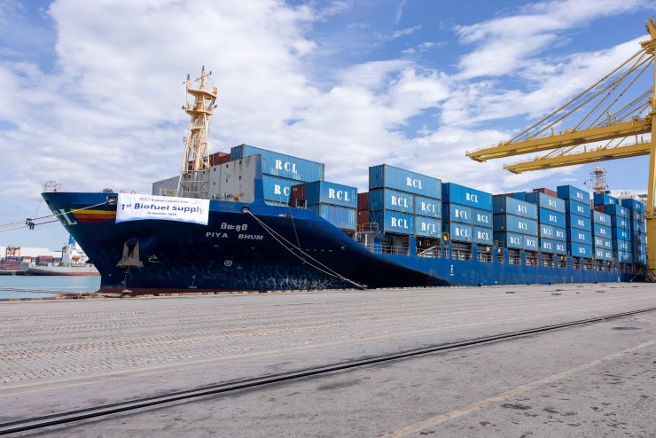 นายชัยพฤฒิ วัชรีคุปต์ ผู้จัดการฝ่ายตลาดอากาศยานและเรือขนส่ง บริษัท ปตท. น้ำมันและการค้าปลีก จำกัด (มหาชน) (OR) พร้อมด้วย กัปตันสมชาย เอี่ยมพิมลรัตน์ ผู้อำนวยการฝ่ายจัดการกองเรือ บริษัท อาร์ซีแอล จำกัด (มหาชน) (RCL) ร่วมเป็นเกียรติในพิธีจ่ายน้ำมัน B24 VLSFO (Very Low Sulphur Fuel Oil) ให้แก่เรือ PIYA BHUM ในกองเรือของ RCL เป็นครั้งแรก ณ ท่าเรือแหลมฉบัง จังหวัดชลบุรี