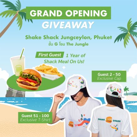 แล้วมาร่วมสัมผัสประสบการณ์ความอร่อยสุดเอ็กซ์คลูซีฟ และเป็นส่วนหนึ่งในหน้าประวัติศาสตร์ครั้งใหม่ครั้งของ “Shake Shack ประเทศไทย” ในวันที่ 1 ธ.ค. 68 ตั้งแต่เวลา 18.00 น. เป็นต้นไป ณ ชั้น G โซนเดอะจังเกิ้ล ศูนย์การค้าจังซีลอน ป่าตอง ภูเก็ต