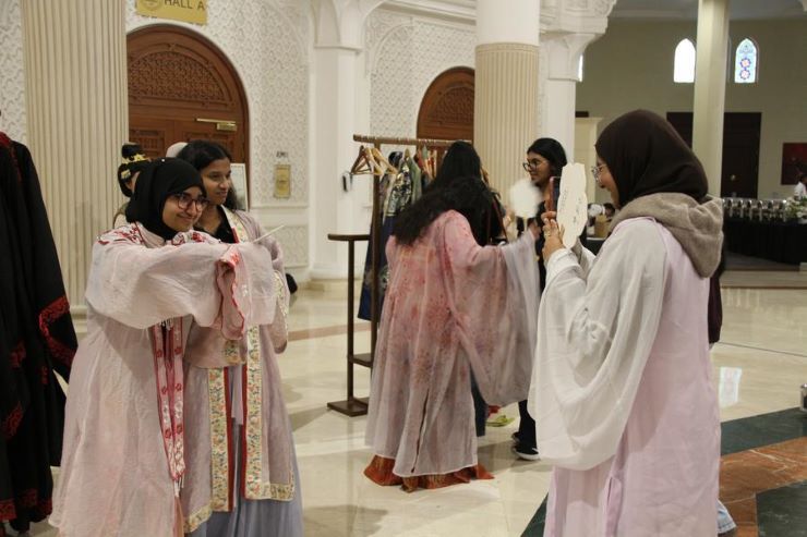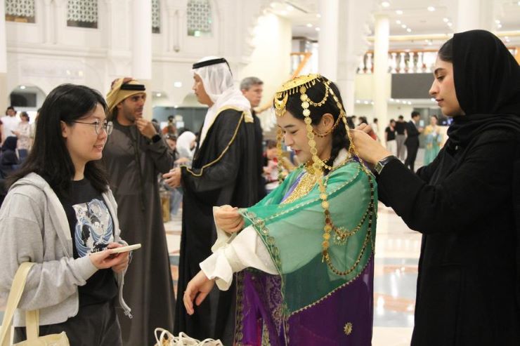นักศึกษานานาชาติ ได้เข้าร่วมการแลกเปลี่ยนทางวัฒนธรรม ผ่านการทดลองสวมใส่ทั้งชุดประจำชาติจีน และชุดพื้นเมืองของชาร์จาห์ ที่ มหาวิทยาลัยอเมริกันแห่งชัรญะฮ์ ทอด ลอว์เซน (Tod Laursen) อธิการบดีของมหาวิทยาลัยอเมริกันแห่งชาร์จาห์ เน้นย้ำ ว่า ประสบการณ์เช่นนี้ช่วยเติมเต็มการศึกษาให้สมบูรณ์ยิ่งขึ้นจากการที่นักศึกษาได้เรียนรู้ซึ่งกันและกันผ่านบรรยากาศแห่งการเฉลิมฉลองร่วมกัน